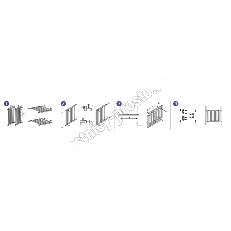 Изделие имеет раздвижную конструкцию с большим диапазоном - от 63.5 до 105 см и может быть установлено в любые дверные или лестничные проемы,  в качестве основного материала используется натуральное дерево (бук) с высококачественной  шлифовкой.