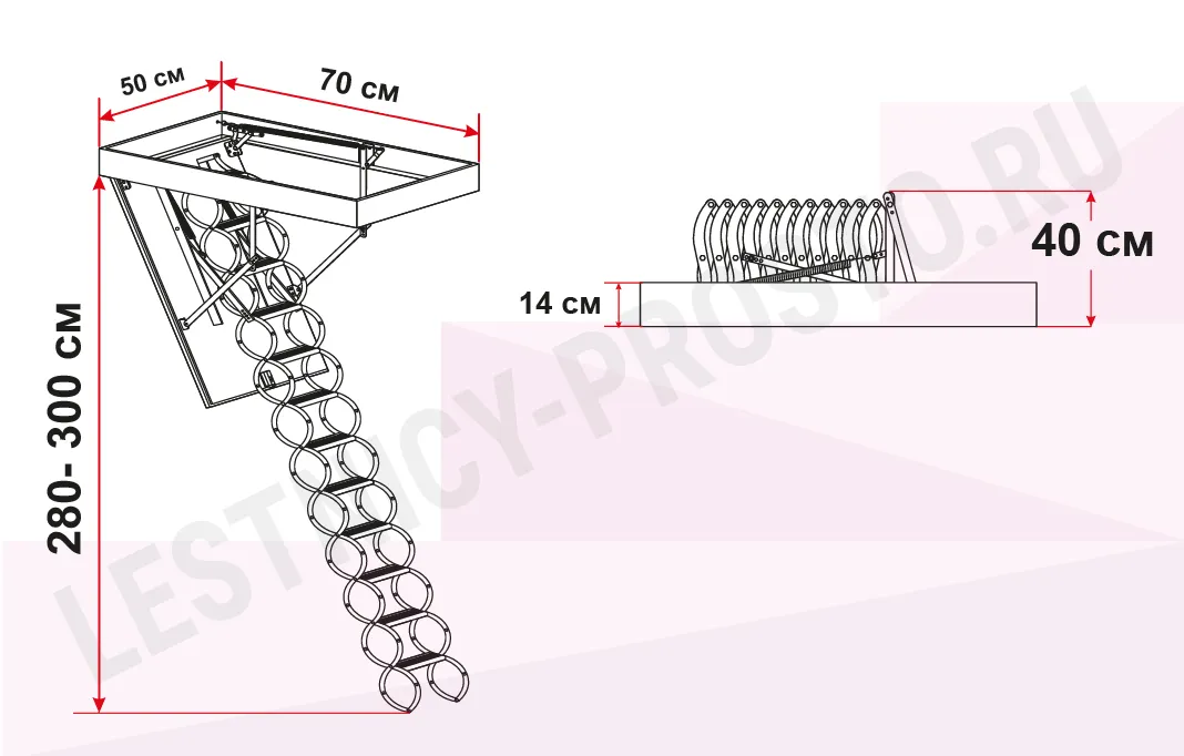 Чердачная термоизоляционная ножничная лестница FAKRO LSF 50×70 см, h-300 см