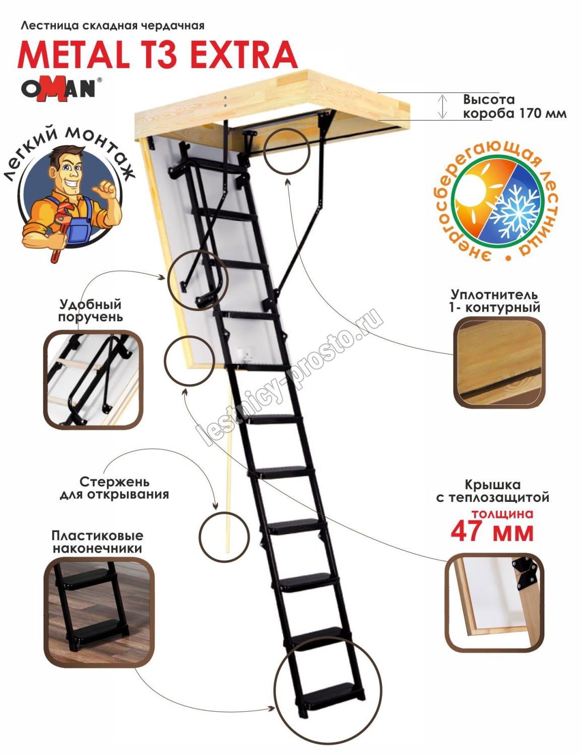 Лестница OMAN Metal T3 EXTRA 60×110 см, h-280 см