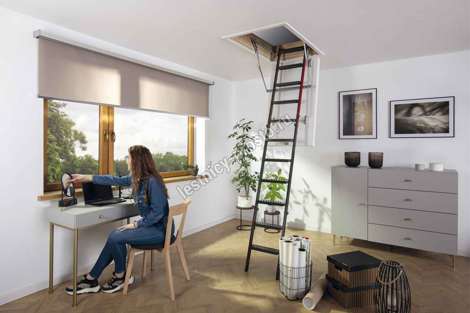 Супертеплоизоляционная металлическая чердачная лестница FAKRO LMT 70×130 см, h-280 см