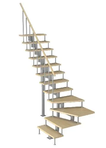 Деревянная межэтажная лестница ЛЕС-01 2915-3075 проем 1630-1370, Сосна