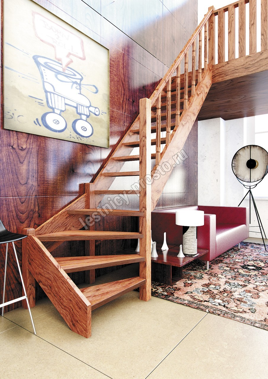 Деревянная межэтажная лестница ЛЕС-07 2470-2675 проем 2360-830, Бук