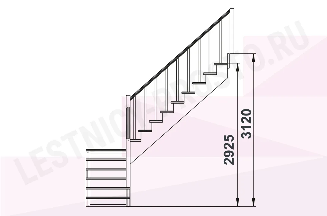 Базовый комплект включает в себя деревянные элементы лестницы и ограждения без какого-либо покрытия.