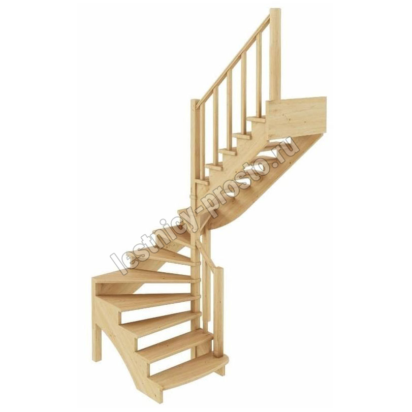 Базовый комплект включает в себя деревянные элементы лестницы и ограждения без какого-либо покрытия.