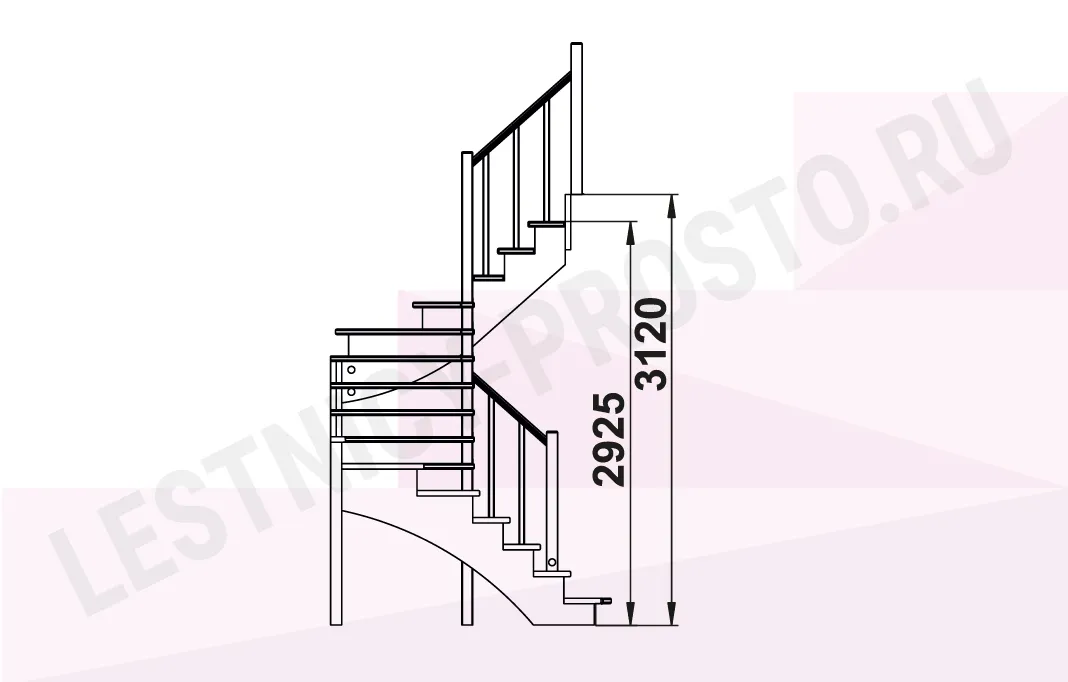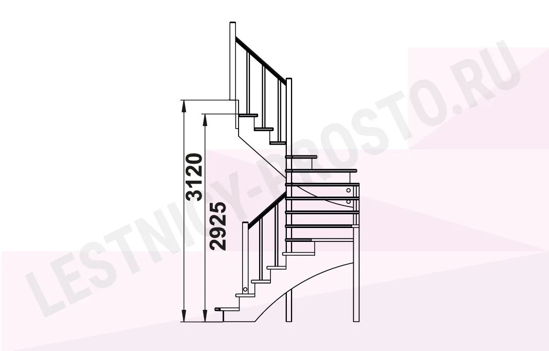 Классическая модель лестницы К-003м увеличенная под проём 2000 мм.