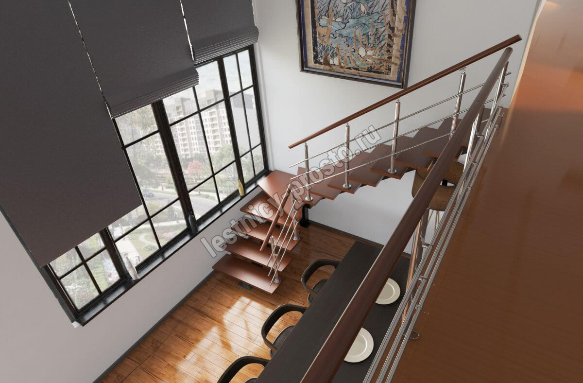 Комплект ограждений для П-образной лестницы PROSTO MONO из 10 ступеней.
