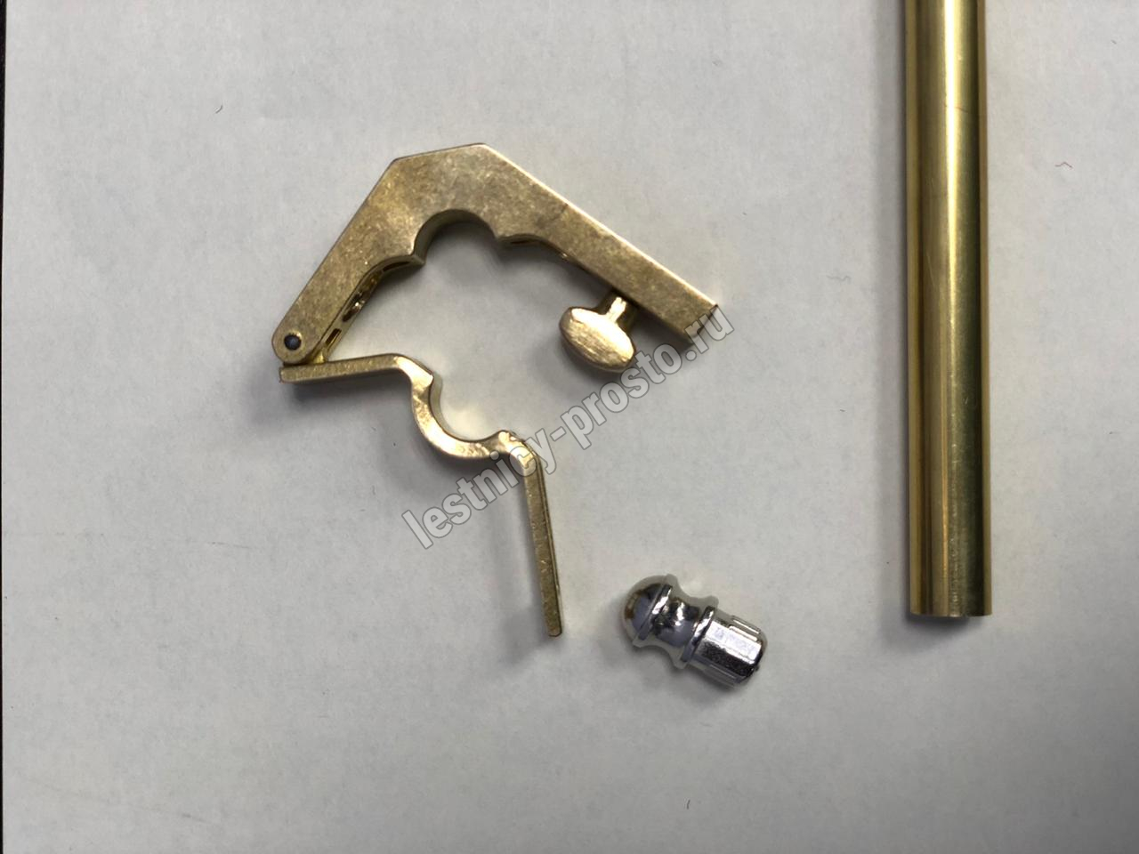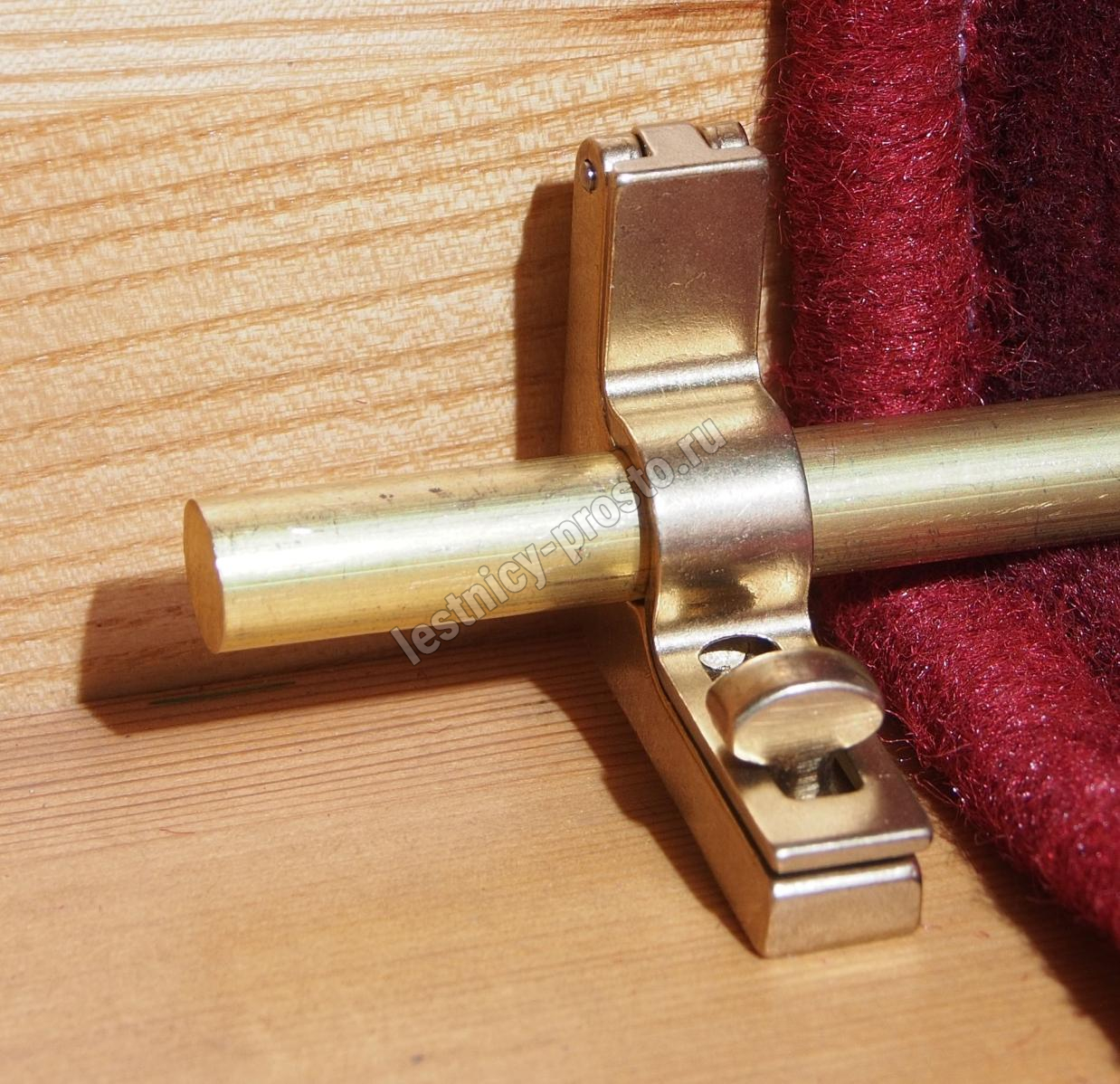 Ковродержатель комплектуется двумя держателями из латуни цвета золото, а также цельным прутком из латуни длиной от 101 до 130 см. Конструкция является сборно-разборной не требующей демонтажа креплений, что делает ее долговечной и очень удобной для чистки ковров и ковровых покрытий.