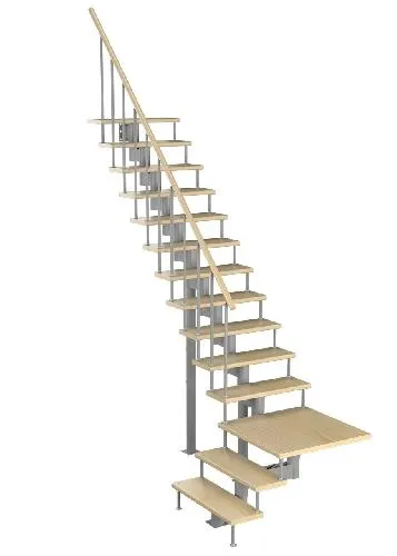 Основой лестницы Prosto Due 40×80 служит двойной металлический каркас из профильной трубы 40×80 мм (включая 4 опоры на пол под поворотом), который обеспечивает надёжную прочность конструкции и современный актуальный дизайн. Данный вариант лестницы предполагает поворот на 180° через забежные ступени. Под заказ возможно изготовление каркаса под поворотную площадку.
