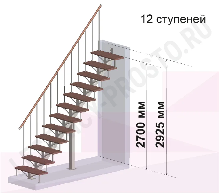 Лестница PROSTO MONO прямая, h292.5 см, ступени хвоя