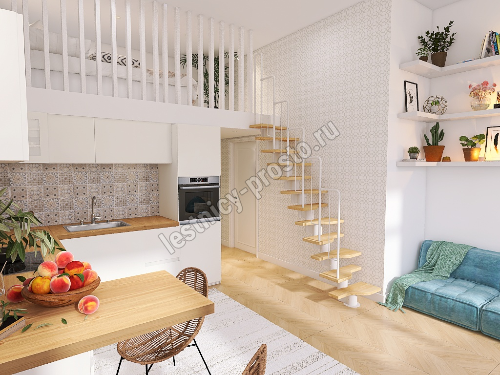 Лестница Prosto Urban White гусиный шаг 600 мм, h198-288 см (11 ступеней), ясень
