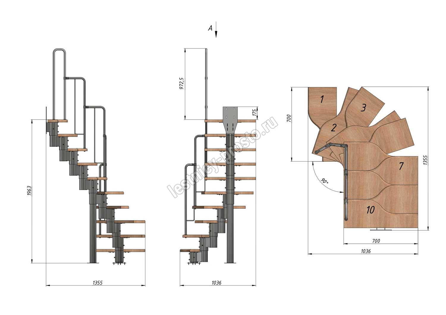 Высота лестницы 1800 - 2640 (10 ступеней) мм