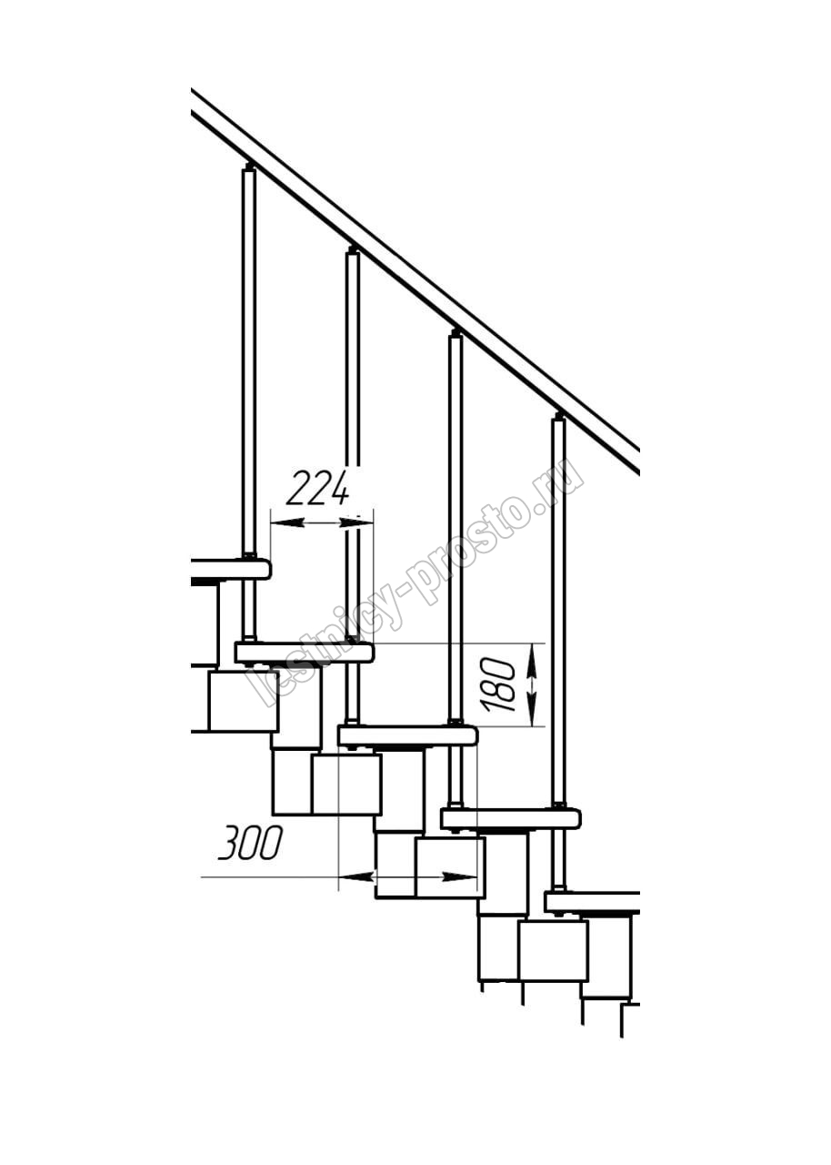 Модульная лестница Фаворит 180 2880-3040, Белый, Сосна, Нержавеющая сталь