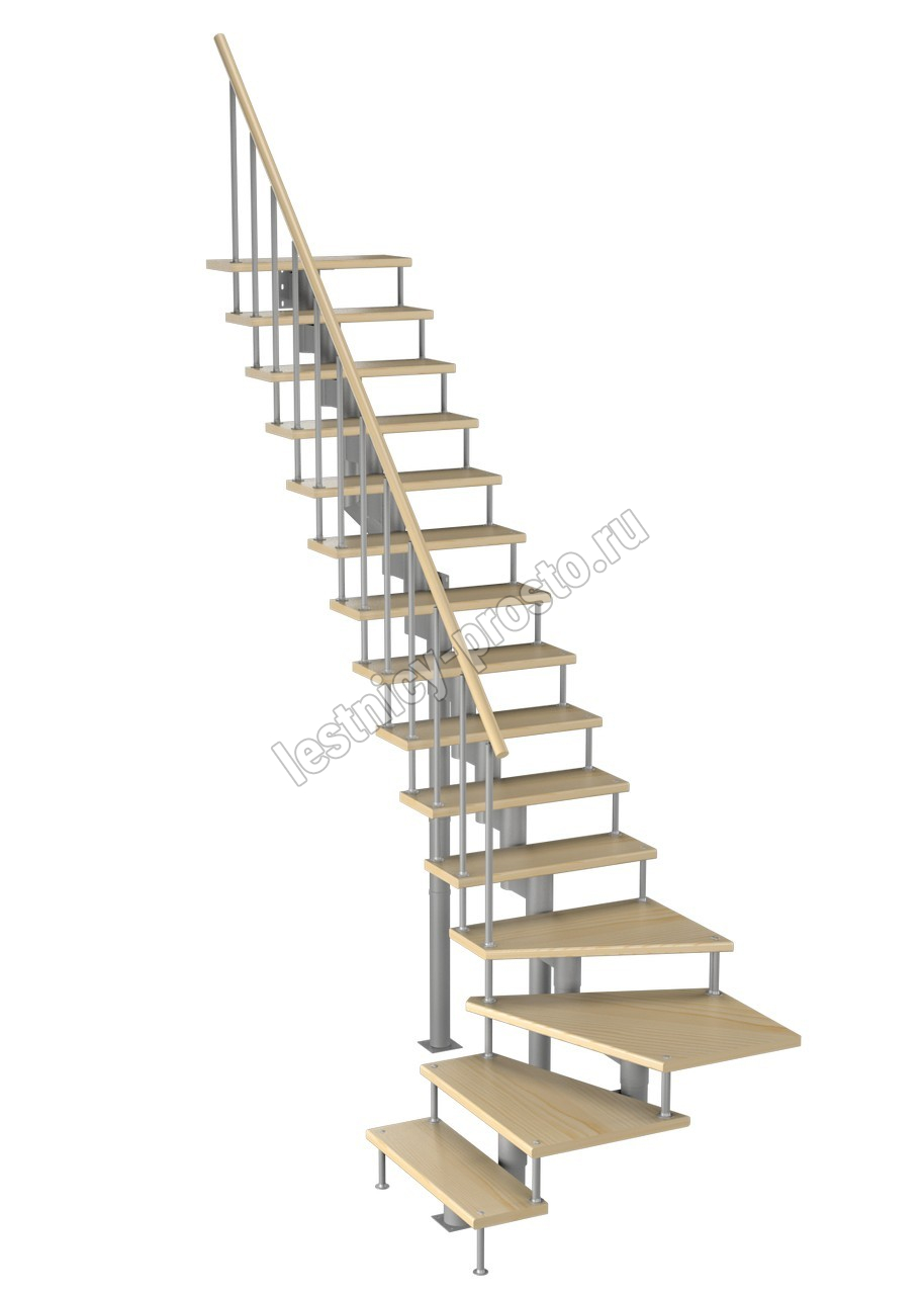 Модульная лестница Фаворит 225 3375-3525, Серый, Сосна, Нержавеющая сталь