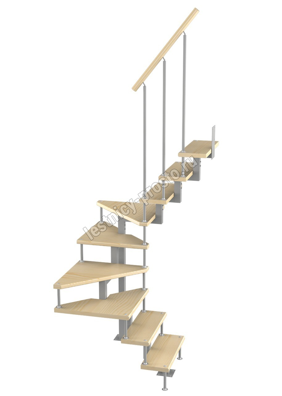 Модульная малогабаритная лестница Эксклюзив 2025-2250, Серый, Бук, Нержавеющая сталь