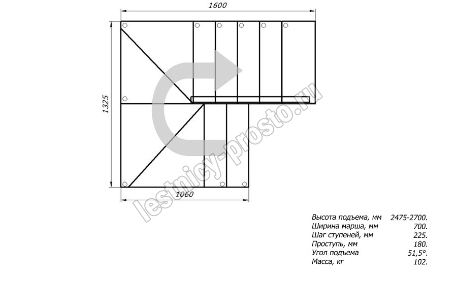 Модульная малогабаритная лестница Эксклюзив 2475-2700, Серый, Лиственница, Крашеная