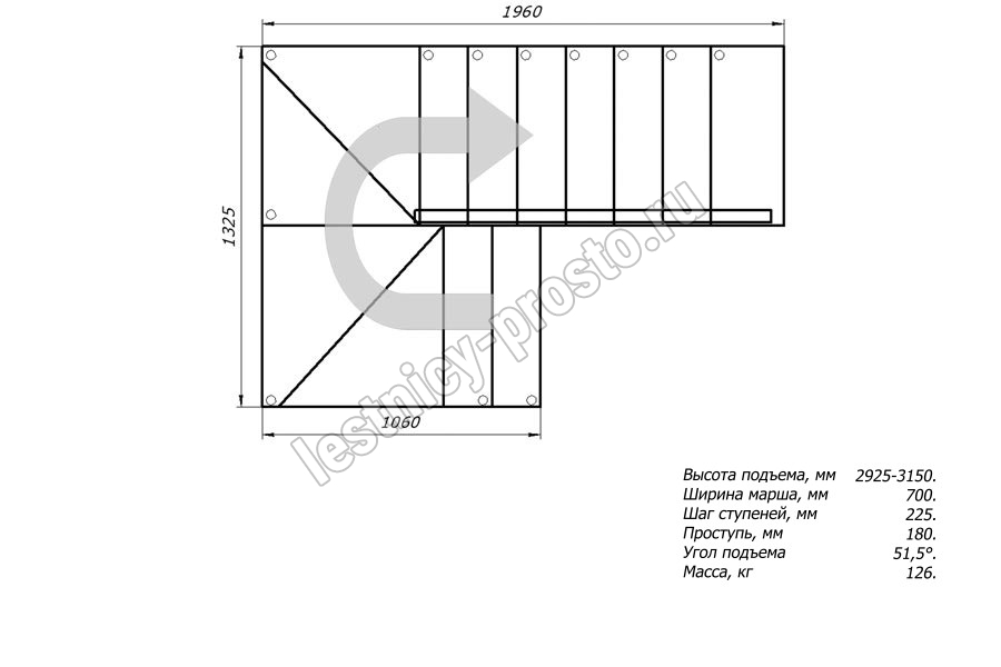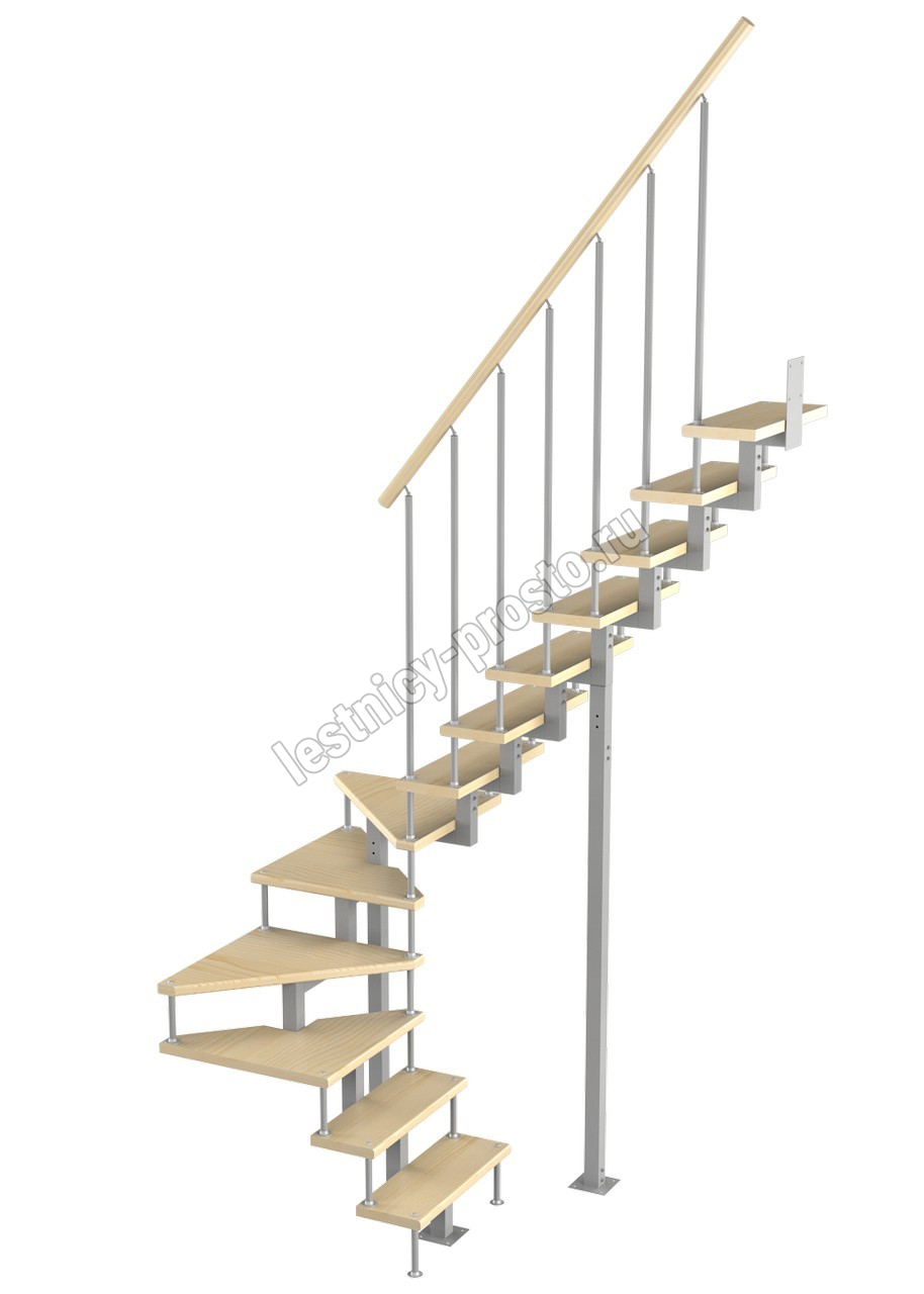 Модульная малогабаритная лестница Эксклюзив 2925-3150, Серый, Сосна, Крашеная, Без Ступений