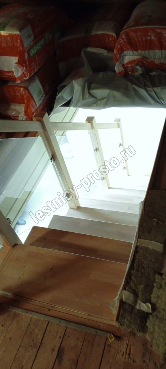 Ступени и поручень выполнены из срощенного бука категории АВ без покрытия.