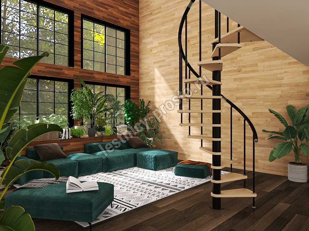 Винтовая лестница Prosto Spiral Black D120см, h296.9-338.1 см