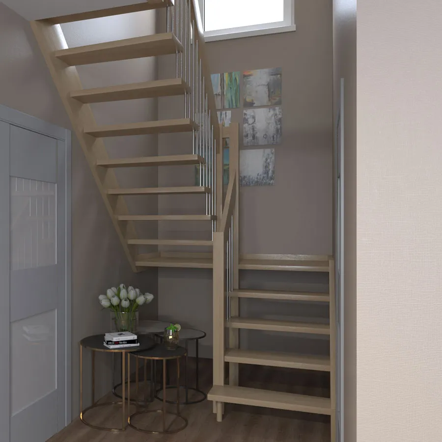 Решение об ориентации поворота лестницы принимается при сборке (комплект собирается и в правозабежную, и в левозабежную лестницу)