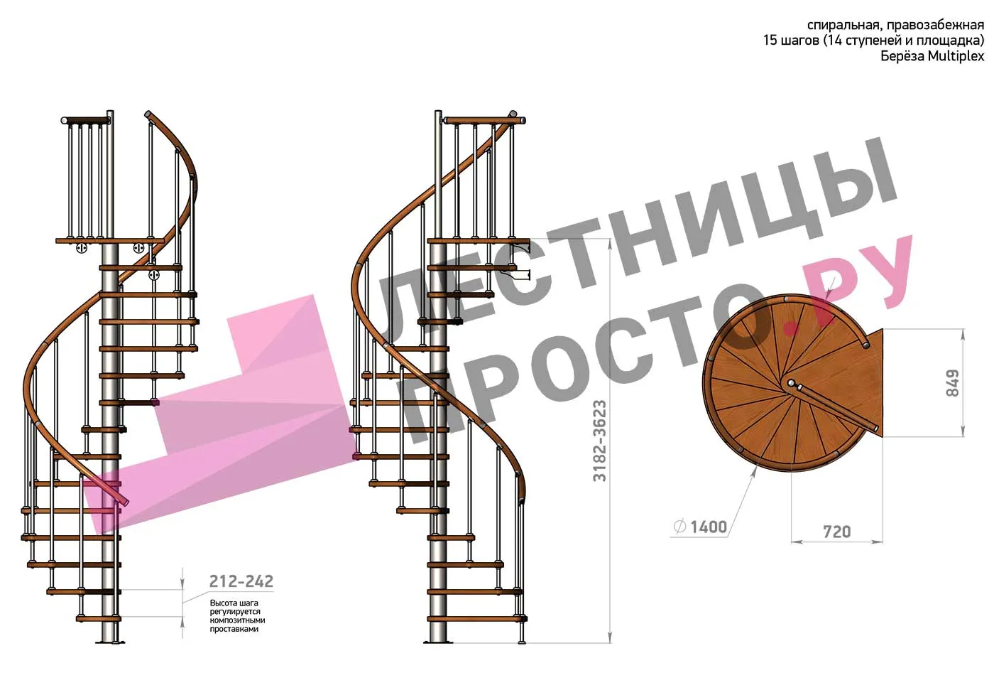 Винтовая лестница Prosto Spiral Black D160см, h254.5-289.8 см