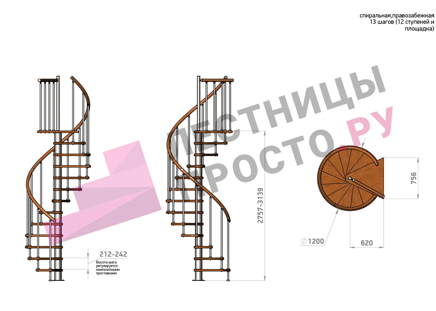 Высота лестницы 2757 - 3139 (12 ступеней) мм