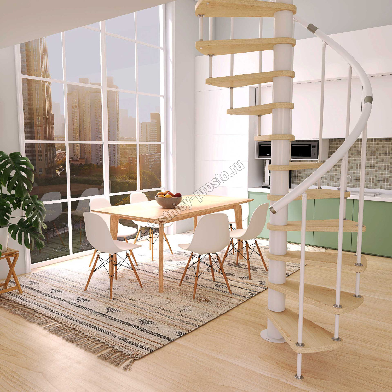 Винтовая лестница Prosto Spiral White D120см, h325.7-369.8 см, бук