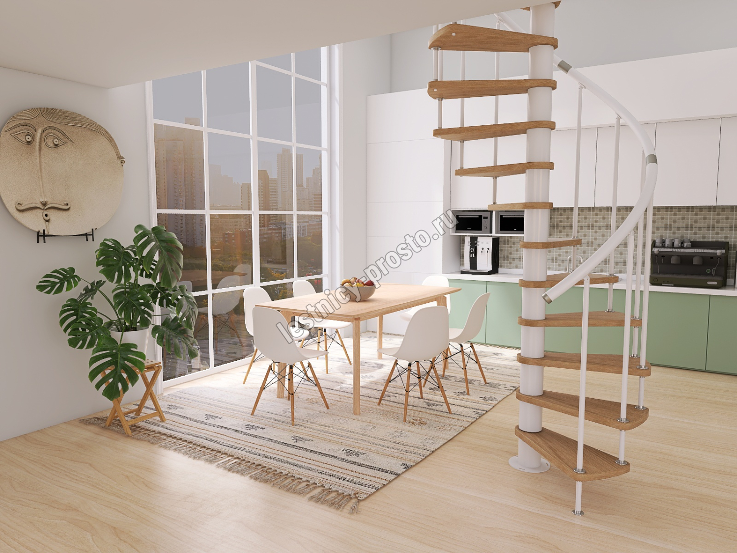 Винтовая лестница Prosto Spiral White D160см, h296.9-338.1 см