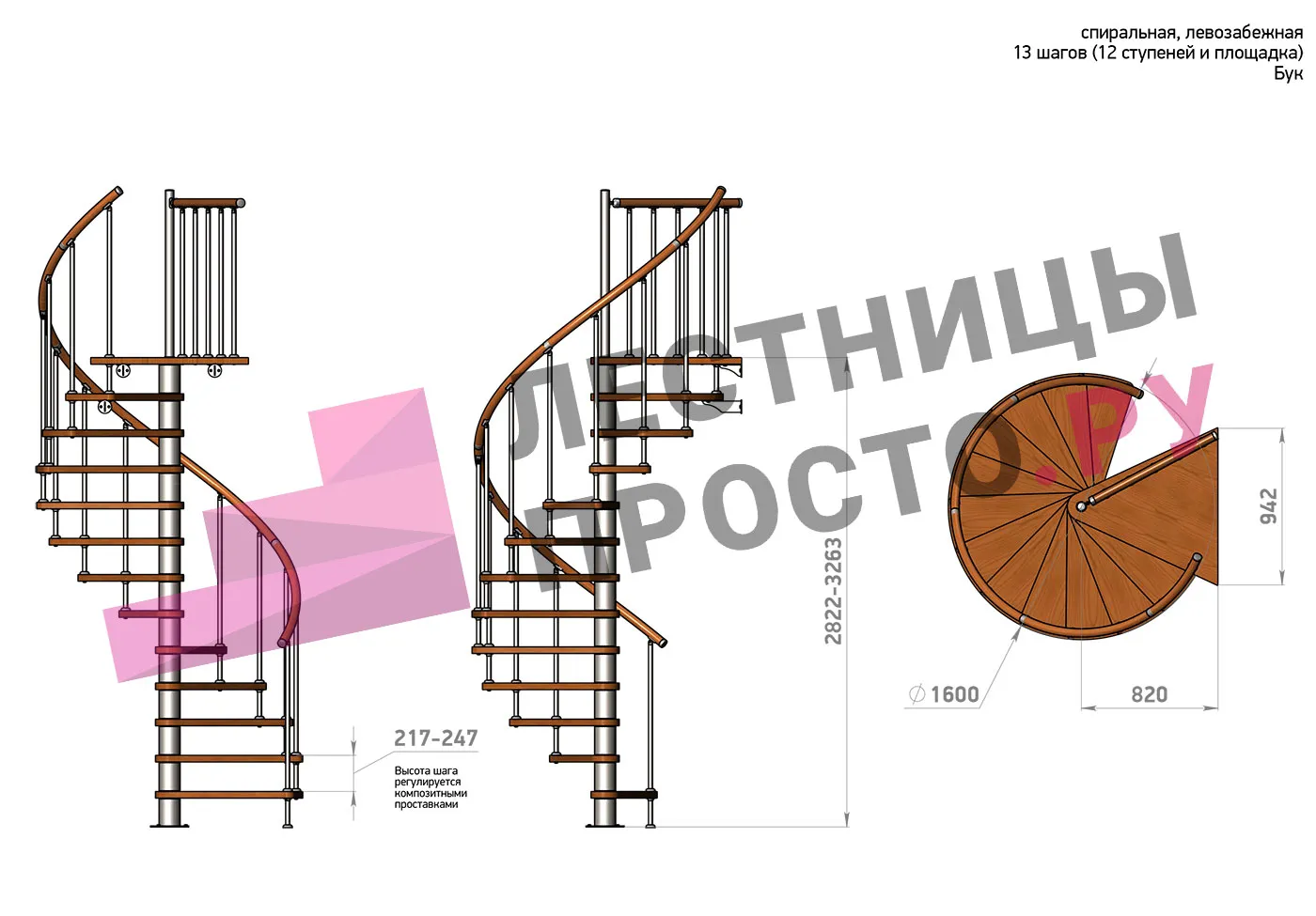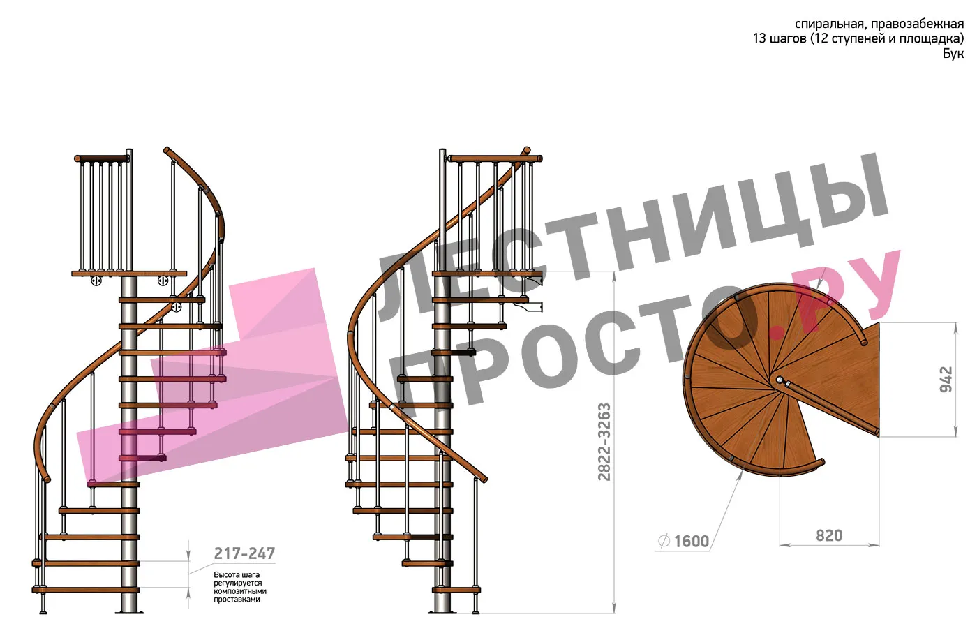 | Винтовая лестница Prosto Spiral White D160см, h325.7-369.8 см, бук |