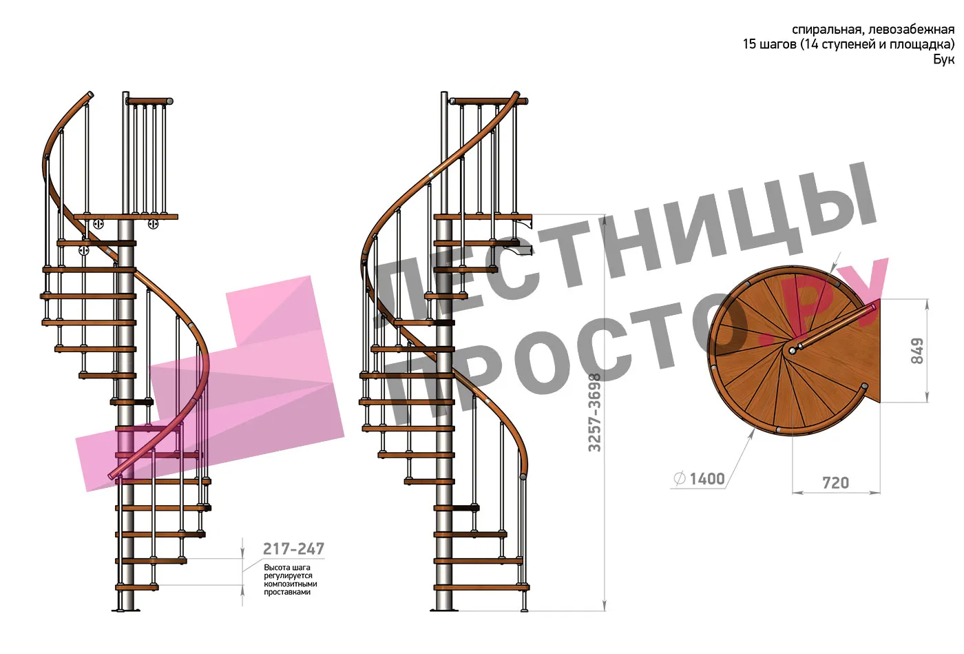 | Винтовая лестница Prosto Spiral White D140см, h325.7-369.8 см, бук |