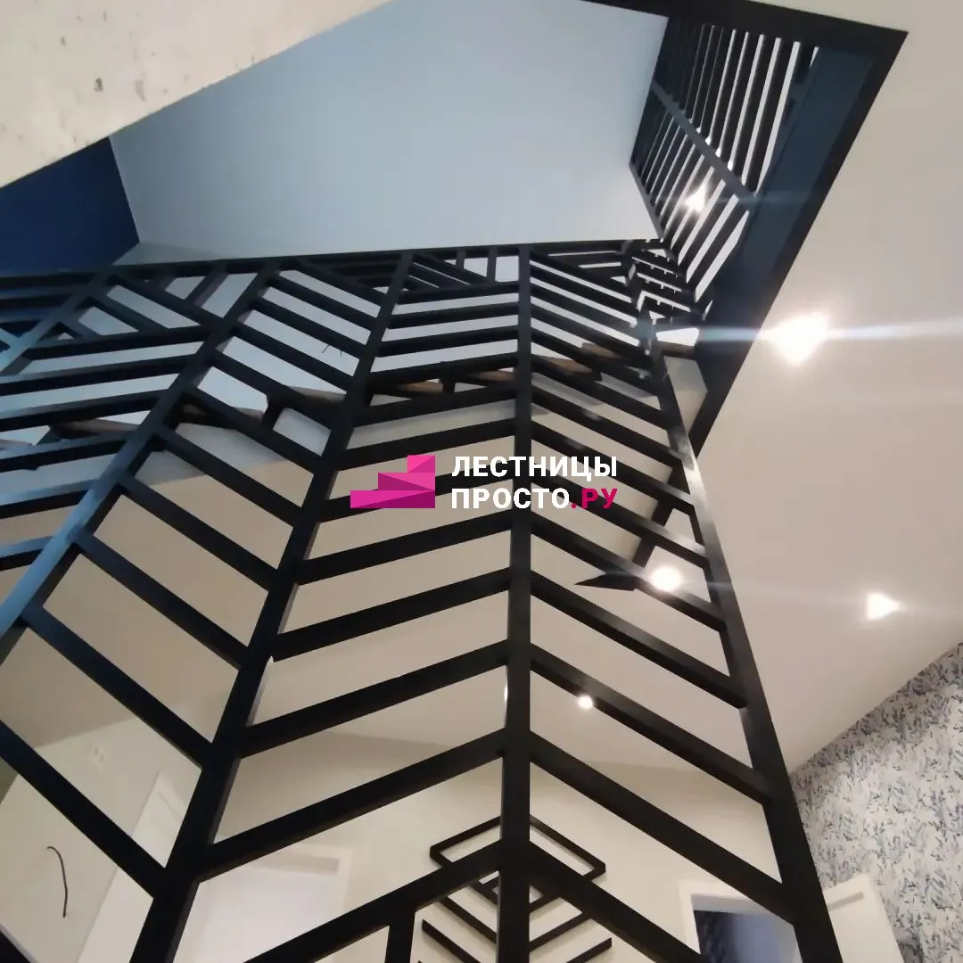 Облицовка лестницы из бетона с дизайнерским ограждением LP-1-13